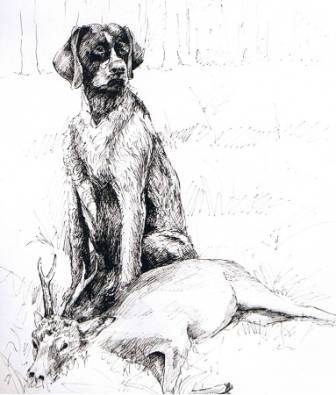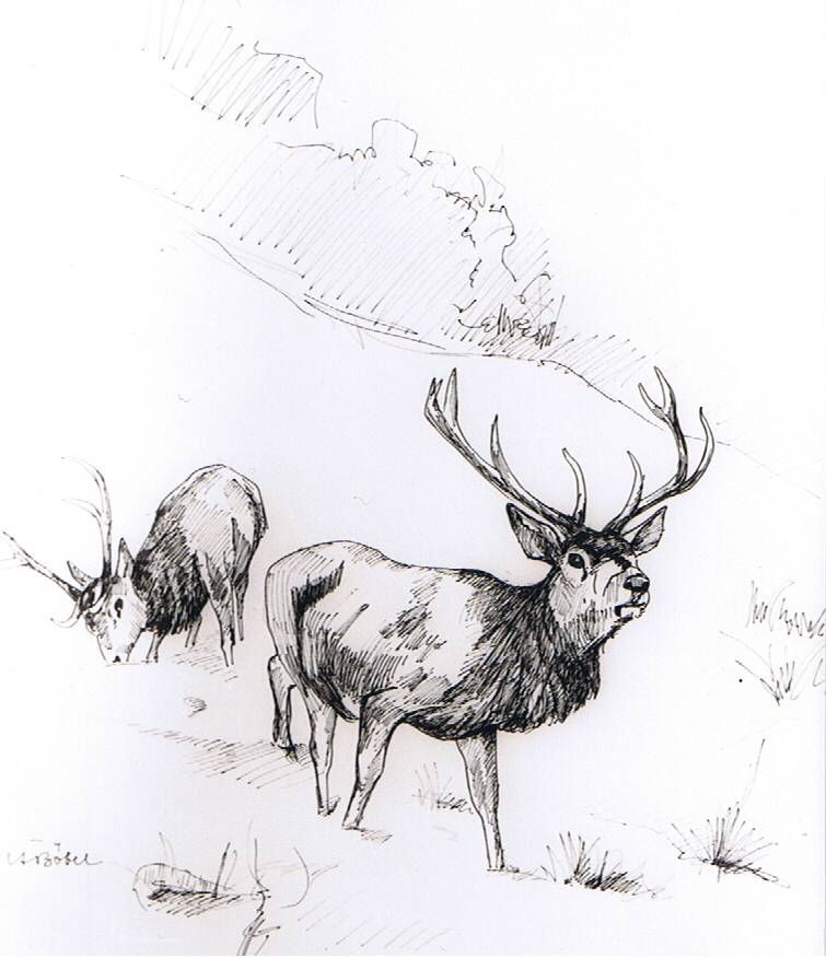 Hirsche, Federzeichnung,
