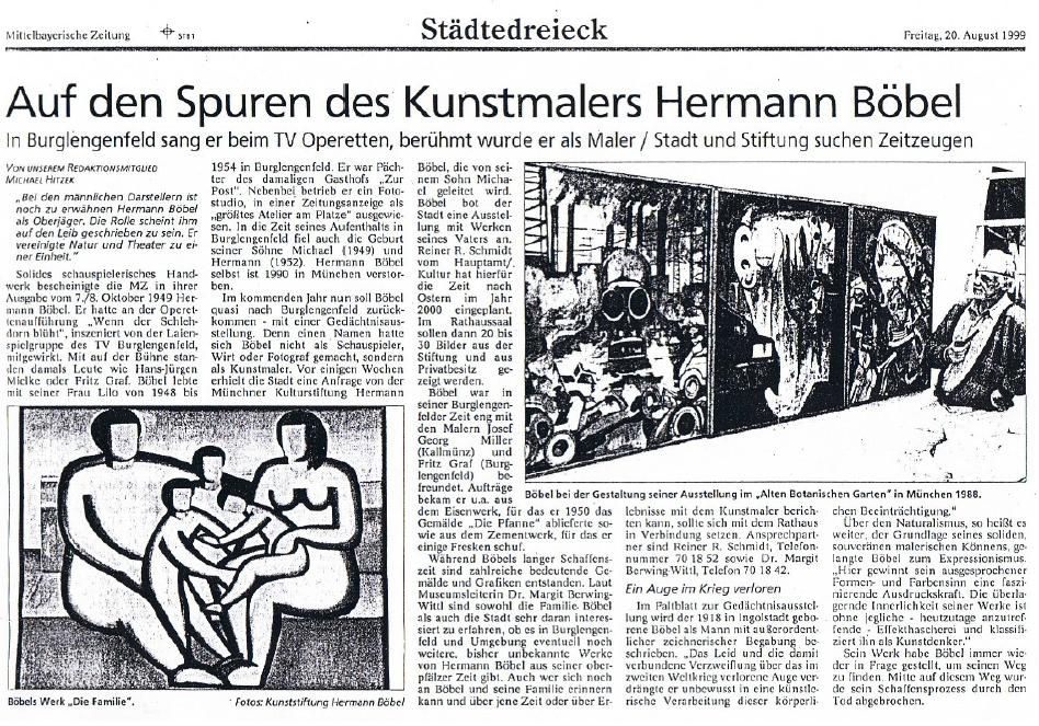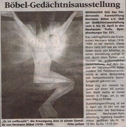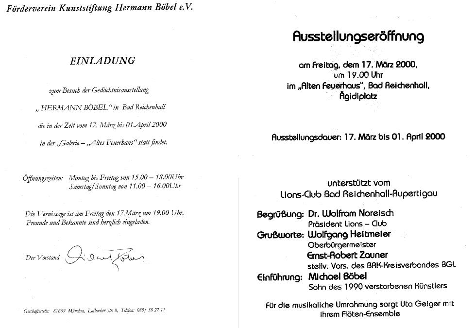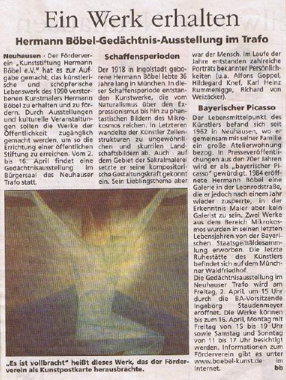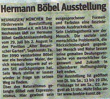 zurück zur Übersicht Gedächtnisausstellung Hermann Böbel im Kunstantiquariat am Pasinger Marienplatz 2001